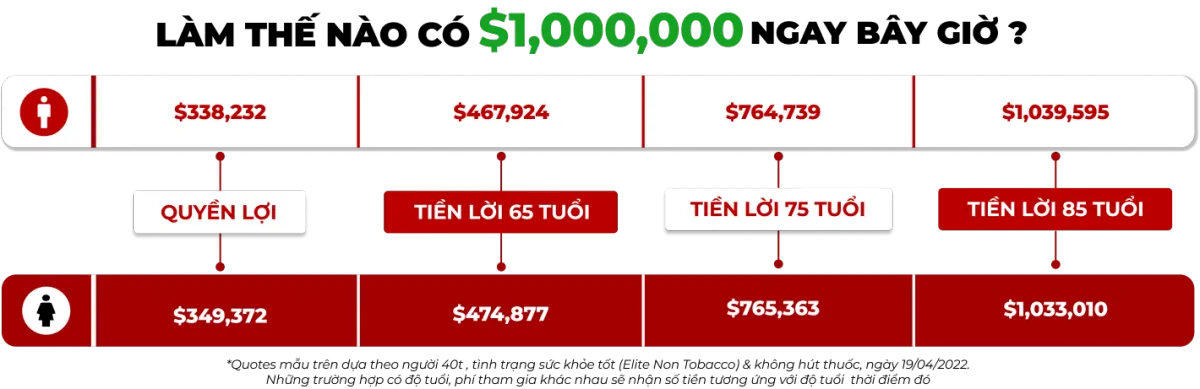 Là bảo hiểm kết hợp đầu tư tích luỹ có lãi suất trung bình từ 6%-8%/năm, Tax-Free và có luôn cả quyền lợi sống trọn đời